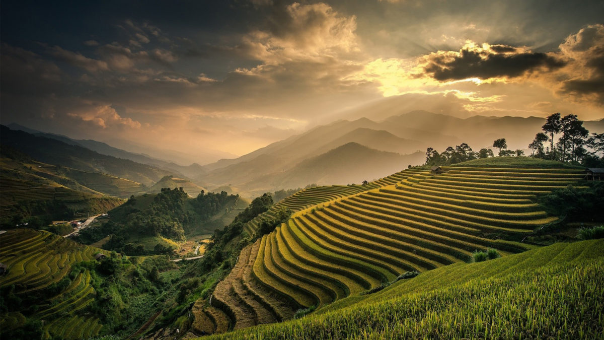 Рисовые поля Sa Pa, расположенные во Вьетнаме, являют собой удивительный ландшафт. В этой области местные этнические меньшинства выращивают рис, строя террасы от подножия до вершины гор. Влажная почва здесь очень плодородна. Известно, что терраса меняет цвет с изменением сезонов и выглядит потрясающе в каждом из них, но пик его очарования приходится на апрель — май, когда выращивается новый урожай. Когда урожай созревает в сентябре-октябре, зеленые пышные поля не перестают удивлять туристов.