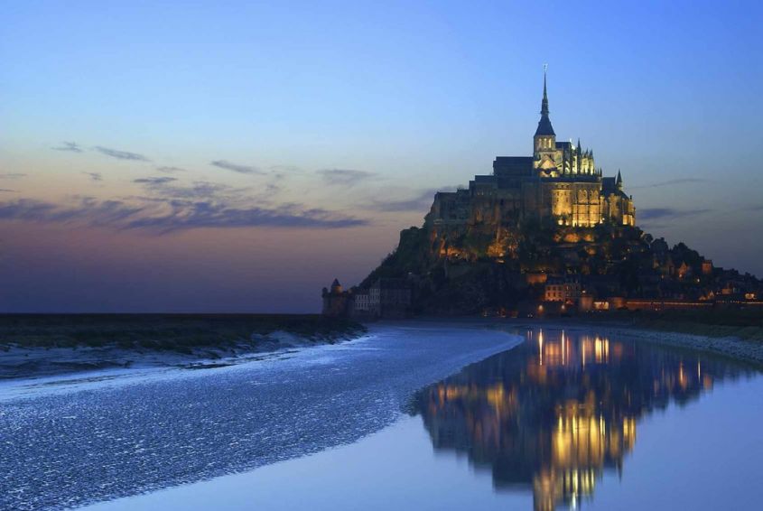 Также расположенный в Нормандии, Мон-Сен-Мишель — это ожившая сказка. Это древнее архитектурное чудо окружено водой, которая отражает