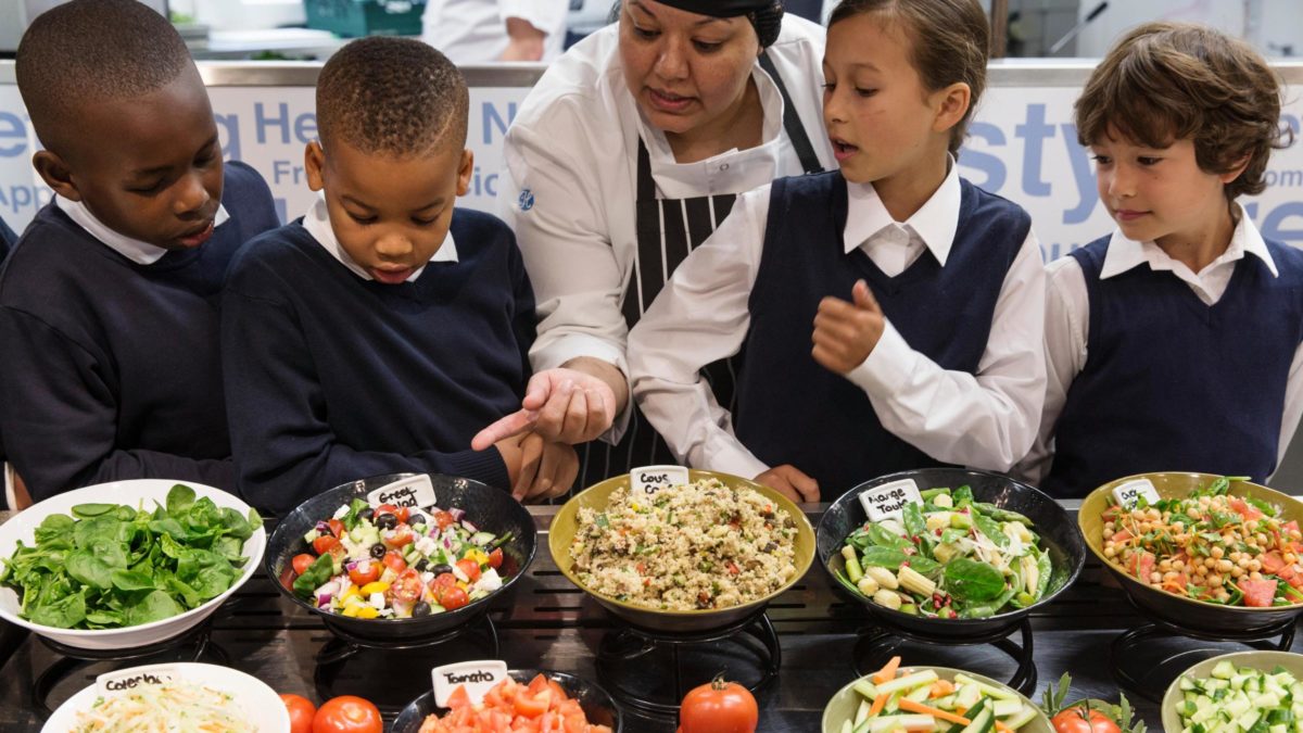 Типичный школьный обед во Франции будет считаться изысканной едой в других странах. Из типичного обеденного меню: огурцы с чесноком и травами; баскское куриное бедро с зеленью; красный и зеленый болгарский перец и оливковое масло; кускус; натуральный йогурт; фрукт. Здесь считают, что обед в середине дня должен научить студентов манерам, хорошему вкусу и элементам правильного питания.