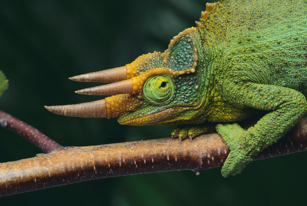 Уроженец Восточной Африки, он также известен как кикуйю трехрогий хамелеон, поскольку он обладает тремя коричневыми рогами, один над другим. Они похожи на давно умершего динозавра трицератопса. Их красиво оттененная кожа и угрожающие рога придают им очень уникальный вид. Исторически они экспортировались как домашние животные в Соединенные Штаты, но теперь их контрабанда является незаконной. Читайте также:
