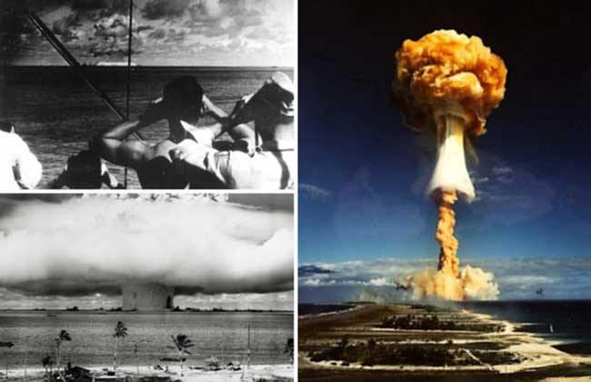 25 июля 1946 года Соединенные Штаты провели первые два из многих ядерных испытаний на атолле Бикини, серии отдаленных островов в Тихом океане. Первая-бомба, сброшенная с самолета; вторая-боеголовка, взорванная на глубине 27 метров. Этот второй взрыв оказался довольно разрушительным, потопив корабли-мишени в радиусе одного километра, но еще хуже было вызванное им загрязнение. Радиоактивность, высвобожденная подводным взрывом, загрязнила окружающую воду, морское дно и большинство близлежащих судов, которые оставались на плаву. Взрыв также послал волны, похожие на цунами, разбивающиеся о близлежащие пляжи.