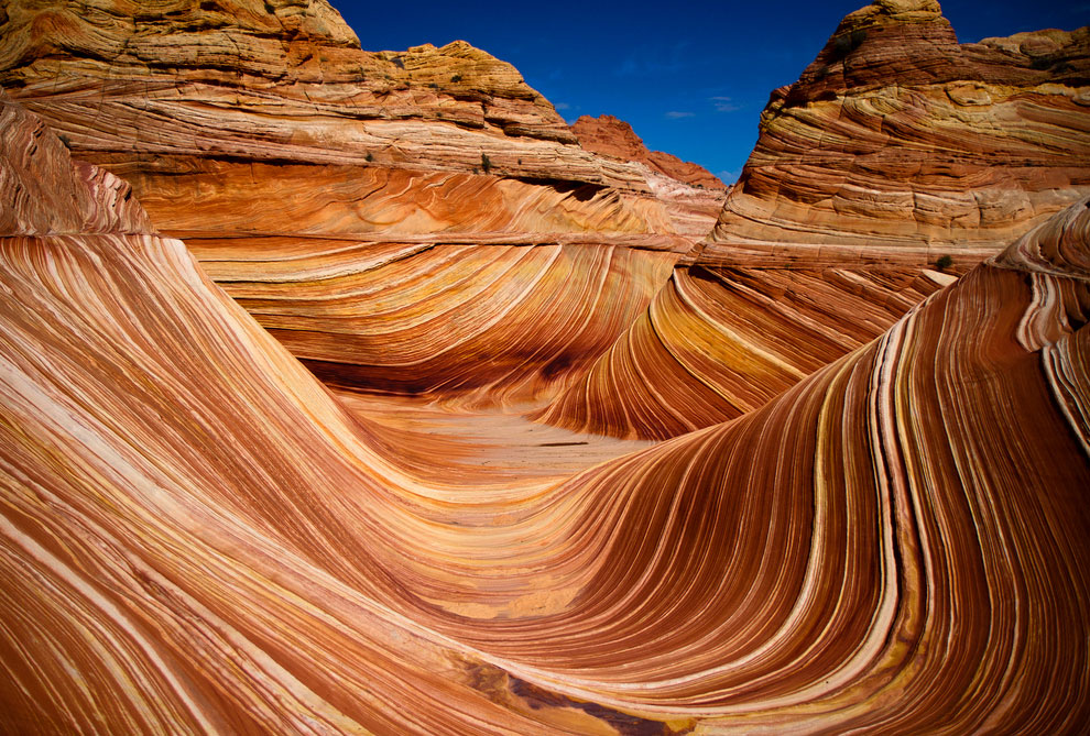 Находится в Аризоне, недалеко от границы с Ютой. 190 миллионов лет геологическое чудо формируется из песчаных дюн, которые на протяжении многих лет и под воздействием различных природных влияний окаменели.