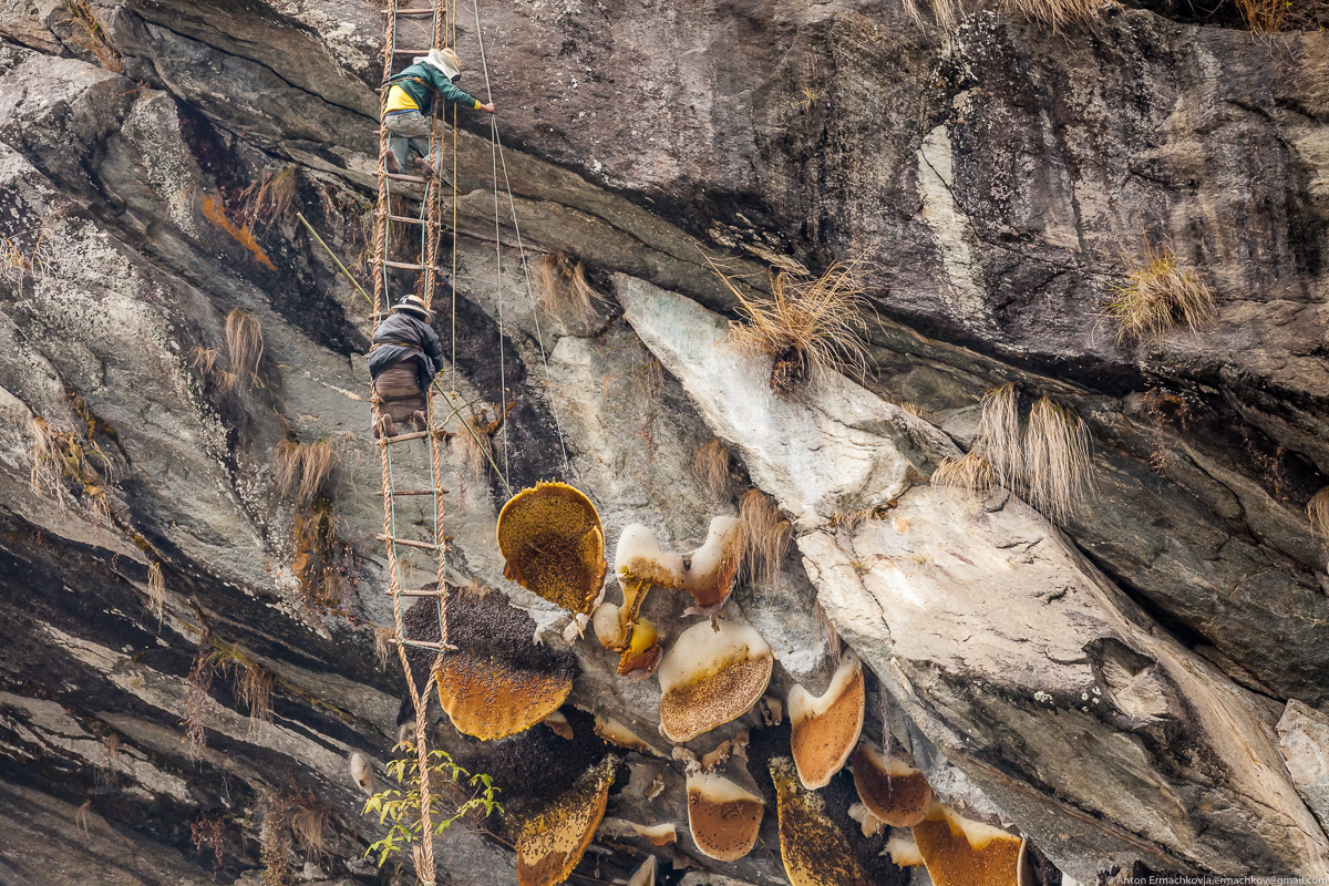 While scaling the rock, they endure not only the sting of the bees, but also treacherous weather and dizzying heights. Despite the danger, the harvest is deeply spiritual, often accompanied by rituals and chants, and is seen as a sacred act of connection with nature.