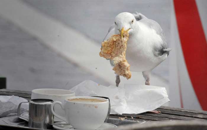 Любят есть рыбу, но не умеют нырять, и это превращает многих чаек в клептопаразитов, которые крадут пищу у других ныряющих птиц. Некоторые из них настолько искусны в этом, что даже способны красть добычу у хищников. И, конечно, несколько видов чаек крадут еду у людей, например, еду навынос на морских курортах. Вместе с другими птицами чайки наблюдают и прячутся поблизости, а затем быстро хватают рыбу и другие уловы, прежде чем убежать. То же самое происходит и с людьми, нередко можно потерять бутерброды благодаря чайкам и другим клептопаразитарным птицам.