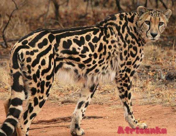 Королевский гепард имеет полосы и пятна, которые отличают их от обычных гепардов. Такие полосы и пятна вызваны одним рецессивным геном, который создает необычный рисунок меха. При редкой мутации у королевских гепардов появляются большие пятна и три темные широкие полосы, тянущиеся от шеи до хвоста. И именно поэтому они выглядят иначе и величественнее, чем другие гепарды. У них также есть небольшие пятна на ногах и голове. Читайте также: