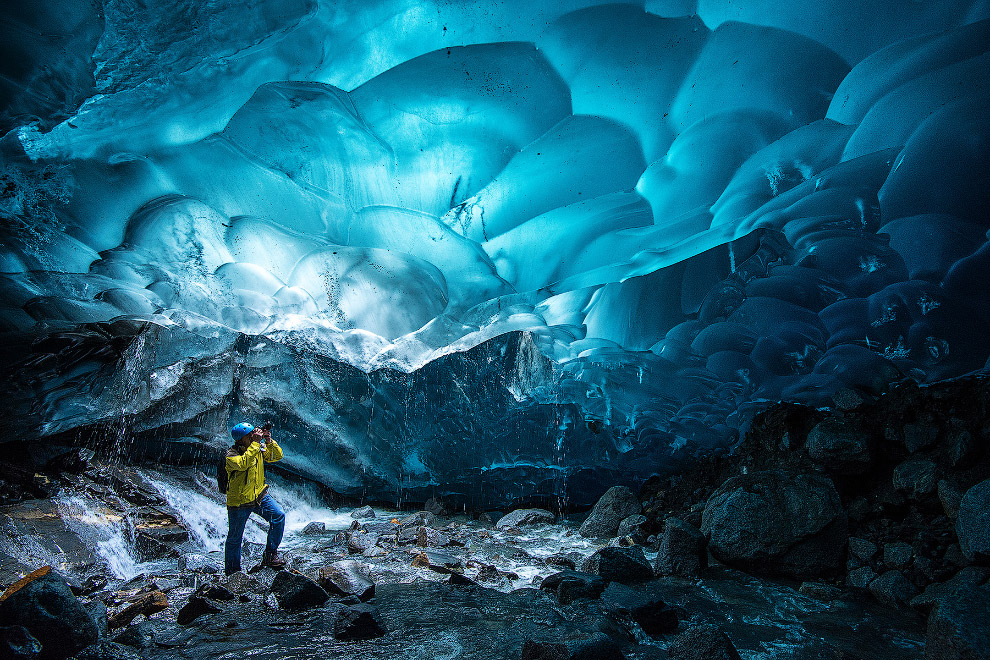 Ледяные пещеры находятся внутри ледника, и доступны только тем, кто желает сплавиться на байдарках, а затем подняться по леднику. Однако ледник отступает все быстрее по мере того, как глобальное потепление нагревает океаны, и температура повышается.