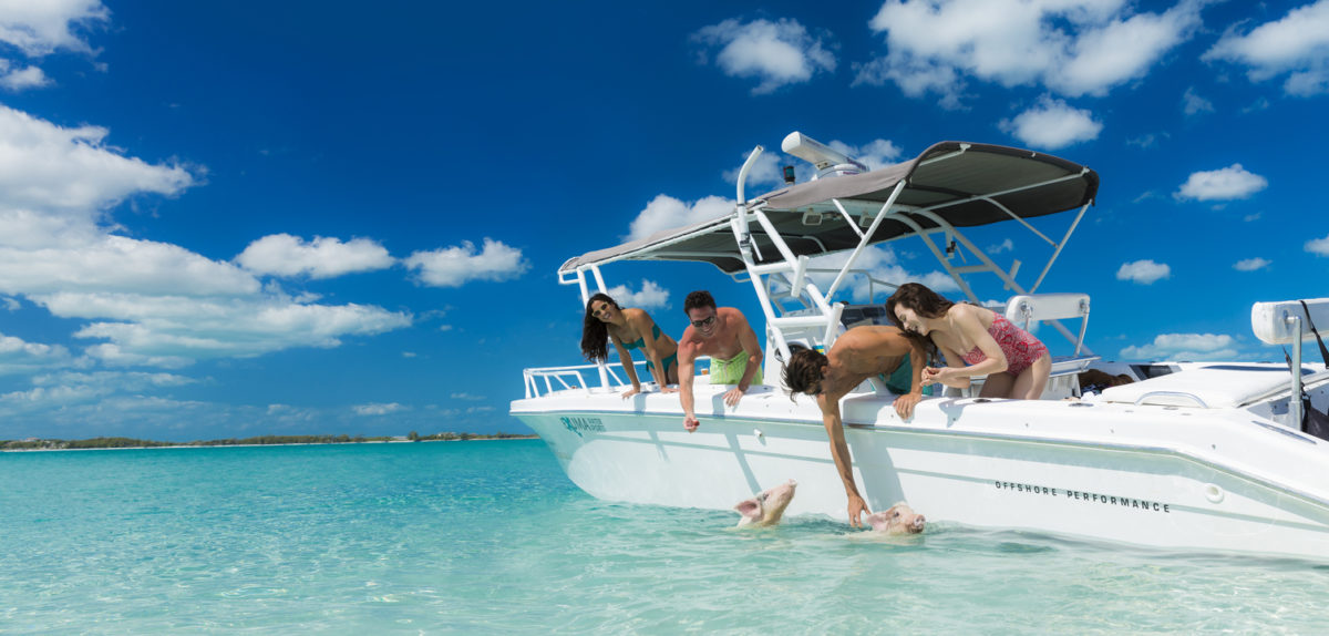 Как найти плавающих свиней? Нет ничего более захватывающего, чем вид свиней, плещущихся в солнечных лазурных водах океана. Эти свиньи не стесняются. На самом деле, их относительно легко найти. Они населяют остров Большой Майор Кей, который является одним из 365 островов Эксума. Тем не менее, благодаря своим знаменитым жителям, Большой Майор Кей более известен как Остров свиней. Поросята очень дружелюбны, и часто сами подплывают к лодкам с туристами, которые кормят животных всякими вкусностями.