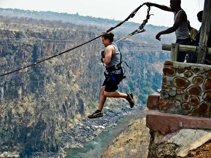 Это хороший вариант, если вы хотите адреналина и пикантности прыжков на ничейной земле, но чувствуете тошноту при мысли о прыжке с тарзанки. Кроме того, подумайте о тандемных банджи-качелях. Это веселый опыт — прыгать и раскачиваться над Замбези вместе с другом.
