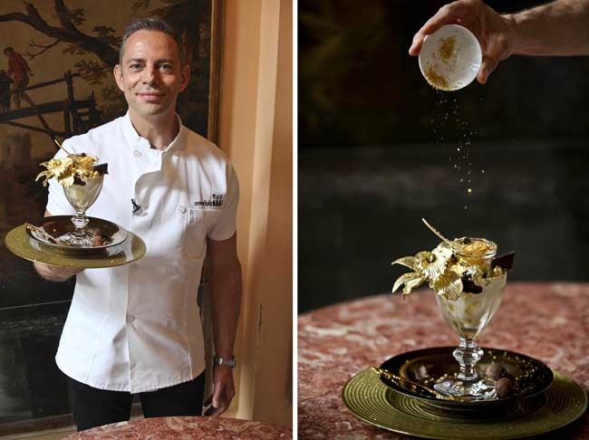 Цена: $14 500 Где: Fortress Resort and Spa, Шри-Ланка Почему так дорого? По-видимому, украшать десерты драгоценными камнями — это последняя «фишка» кондитеров. Главная ценность этой искусно составленной сладости-это не золотой итальянский лист кассаты, гранат и компот из манго, приправленный шампанским «Дом Периньон», или шоколадная скульптура рыбака, а 80-каратный аквамариновый камень, с которым десерт подается.