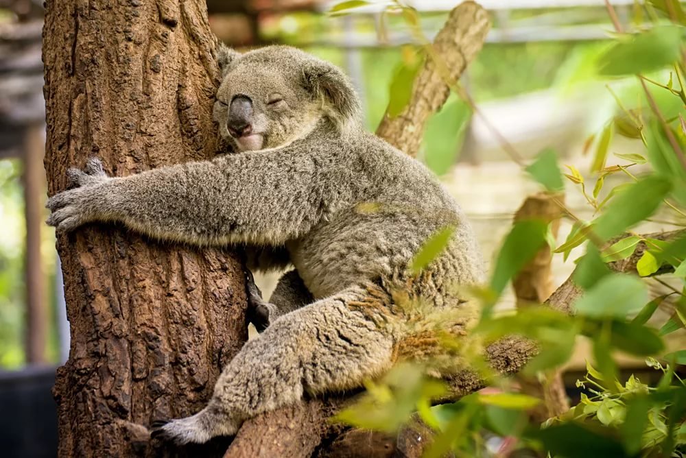 Koalas may look cuddly, but they’re also some of the sleepiest animals in the world. Awake for just two to six hours a day, their lethargy comes from their diet. Eucalyptus leaves are tough to digest, full of fiber, and even mildly toxic, meaning koalas must conserve their energy by sleeping for most of the day.