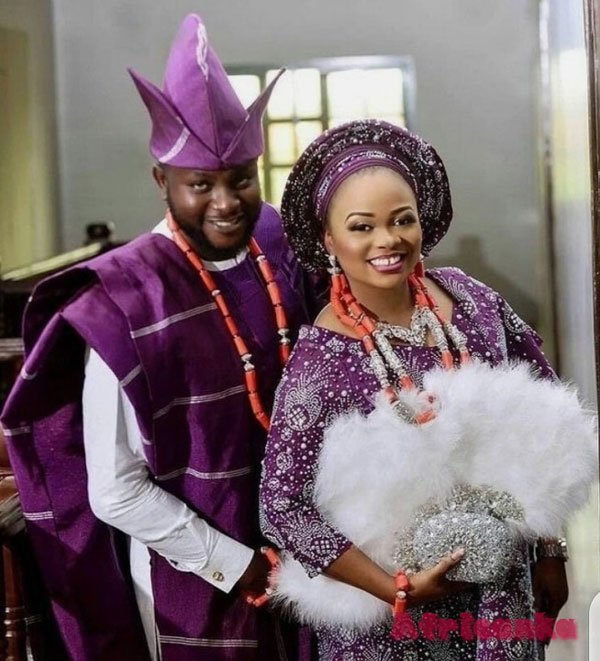 Африканский традиционный свадебный наряд для свадьбы Йоруба называется Алага Иджоко. Официальная церемония происходит после того, как семьи супругов встретились и договорились о союзе своих детей. Наряд невесты для церемонии алага состоит из геле (головной платок, который тщательно завязывается), буба (блузка) и иро — это большой кусок ткани, который завязывается вокруг талии невесты и обычно имеет длину по щиколотку. Цвет ее свадебного наряда отражает цветовую тему, выбранную ее семьей, и дополняет наряд жениха. Аксессуары включают в себя золотое ожерелье, бусы, браслеты и золотые серьги. Жених носит агбаду, которая является традиционным нарядом из четырех частей. Цвет агбады дополняет наряд невесты, отражая цветовую тематику, выбранную его семьей. Читайте также: Странные свадебные традиции и обычаи по всему миру