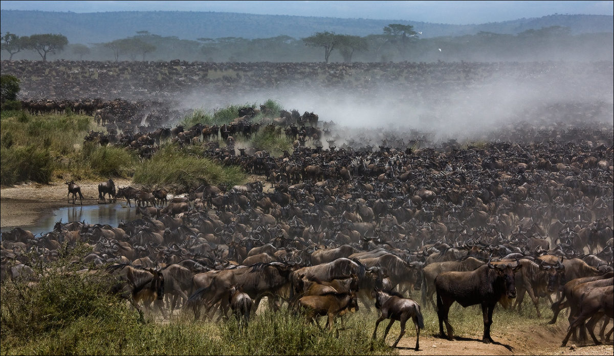 Старейшее паломничество природы происходит на бескрайних равнинах национального парка Серенгети и Национального заповедника Масаи Мара. Это, безусловно, самое большое массовое движение наземных млекопитающих на всем земном шаре.